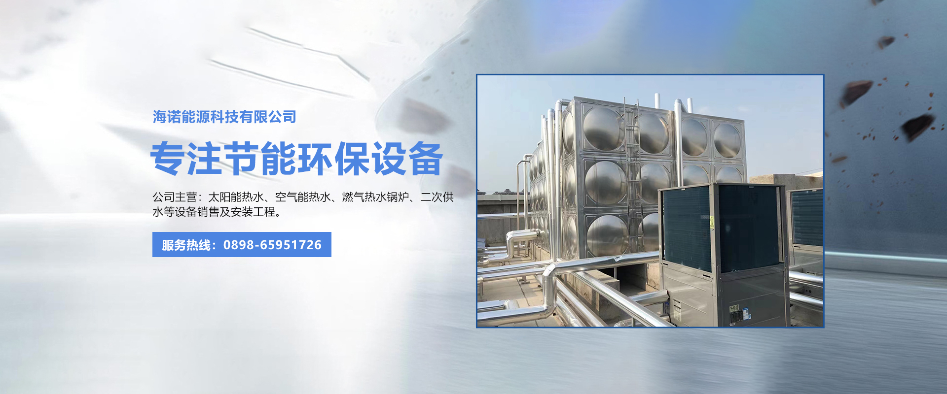 海南海諾能源科技有限公司成立于2007年,是一家致力于節能環保產品的開發、生產及應用的科技公司,公司主營:太陽能熱水、空氣能熱水、光伏發電、抗震支架、燃氣熱水鍋爐、二次供水等設備銷售及安裝工程。